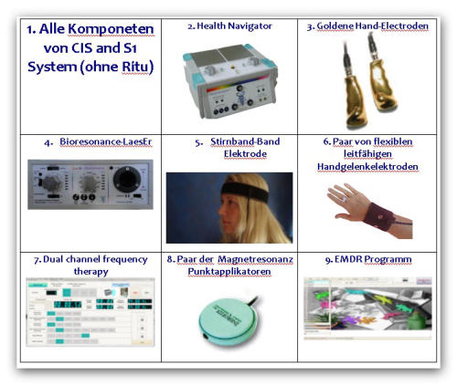 CoRe Advanced System S2in dieser Zusammenstellung finden Sie alles was man benötigt um Informationsmedizin,Energiemedizin und Bioresonanz durchzuführen. Alles was in CIS und S1 enthalten ist.Einzigartig ist in diesem System die Dualfrequenztherapie, die mit sämtlichen Appllikatoren verwendet werden kann und durch die Interferenz viel wirkungsvoller ist.HealthnavigatorAuf der Informationsebene werden "nur" informative (symbolische) Verbindungen benötigt, auf der energetischen Ebene sind jedoch tatsächliche, elektrische Anschlüsse erforderlich. Dazu verfügt die Interface-Einheit über BNC-Anschlüsse, Audioanschlüsse für Klangtherapie über Kopfhörer oder Lautsprecher. Einen elektrischen Anschluss für den Medikamentenwabenbereich zum Prägen von Medikamenten in physische Substanzen. Über die Interface-Einheit wird der Computer mit den Handelektroden, optional den Fußelektroden, der optionalen elektrischen Frequenztherapieeinheit und dem optionalen Plasmagenerator oder den neuen Magnetfeldtherapiemöglichkeiten verbunden.Organ BalancingÜber 2000 menschliche Organteile können mit ihrem Namen und graphisch angesprochen und ausgeglichen werden, wobei die Effektivität über Prozentangaben sichtbar wird. Die Ausgleichszeit kann beliebig gewählt werden.Biofeedbackfrequenzenwerden mittels des Hologrammgenerators in Zusammenhang mit den eingegebenen Symptomen gefunden. Es wurde festgestellt, das diese resonierenden Frequenzen im Klientenspezifischen Echtzeitmodus wirksamer sind, insbesonders auch im Fall von unspezifischen Befunden.Frequenzen Setsca. 1100 Sets für krankheitsspezifische Frequenzen ( ca. 8000 ) die auf Erfahrungswerten u.a. von Clark /Rife beruhen und sich als therapeutisch wertvoll erwiesen haben.nähere Infos dazu HIER klicken Resonante FrequenzenDer Hologrammgenerator zusammen mit einem schnellen Scanning Algorithmus findet die spezifischen Frequenzen mit denen der Klient momentan in Resonanz ist. Gerade auch bei unspezifischen Krankheiten hat sich dieses Programm als sehr effektiv erwiesen. Dieses einzigartige Advanced System macht die Überlegenheit des Core Inergetix gegenüber Konkurrenzprodukten aus. * Über 100 000 Einträge, organisiert in Gruppen um den fokussierten Ablauf während der Analyse zu unterstützen * In Version 6.0.sind umfangreiche Datenbanken bereits enthalten, die auch mit eigenen Inhalten ergänzt und jederzeit erweitert werden können. * Weitere spezielle Datenbanken aus vielen Fachgebieten können zusätzlich ausgewählt werden. DatenbankenHandelektrodenEdelstahlhand-elektroden sind leicht zu reinigen.(PS.: die vergoldeten Handelektroden die auf manchen Bildernzu sehen sind, sind leider ausverkauft) weiteres Zubehör hier klickenGerne beraten wir Sie, welche Systemteile Sie für Ihre Arbeit brauchen, rufen Sie uns an, wir führen Ihnen das System vor und zeigen ihnen die Möglichkeiten, wie Ihre Arbeit durch das Core Inergetix erleichtert und effizzienter wird.Vorteile: * Hoch-effektive Filter Möglichkeiten * Reproduzierbar bis zu 95% * Super-schnelle Analyse, innerhalb Sekunden * Einfach zu bedienendes Interface * qualifizierter Technischer Support * vor-programmierbare Besendungsmöglichkeit * Kosten: günstiger als vergleichbare andere SystemeTherapeuten können hier eine kostenloseDemo anfordern: Anmeldung DemoJA, Bitte führen Sie mir Core Inergetix vor